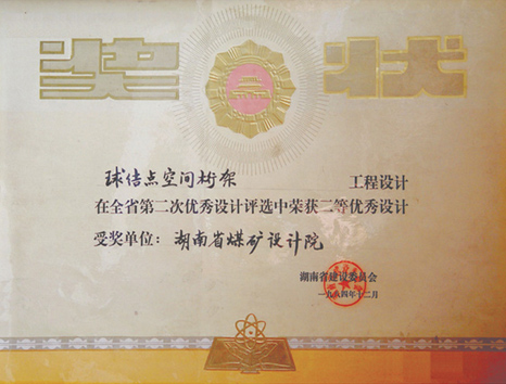 湖南省優(yōu)秀設(shè)計項(xiàng)目二等獎(1984)