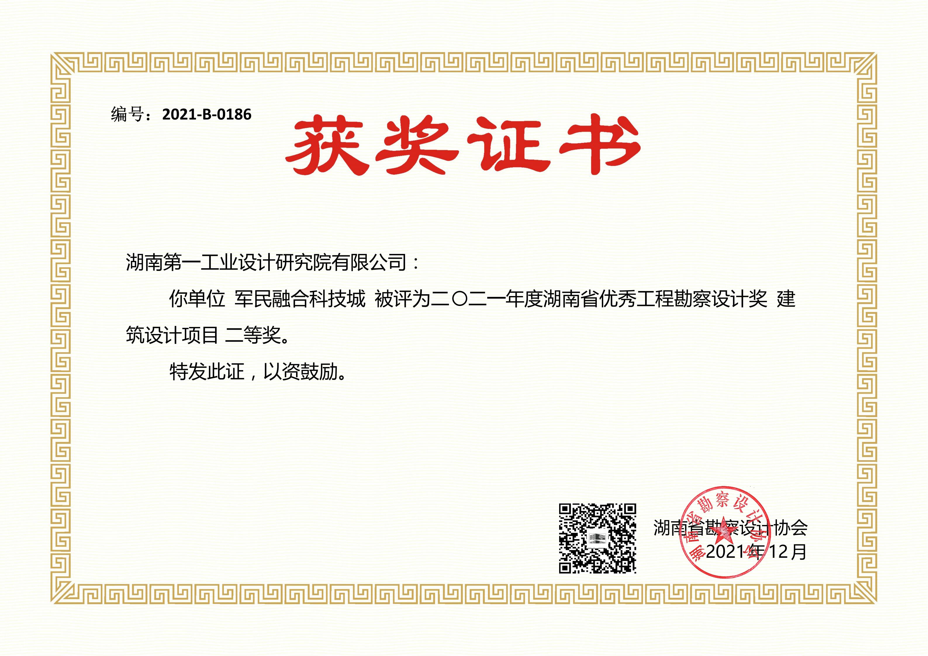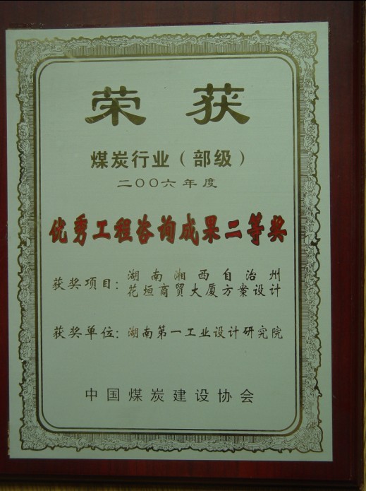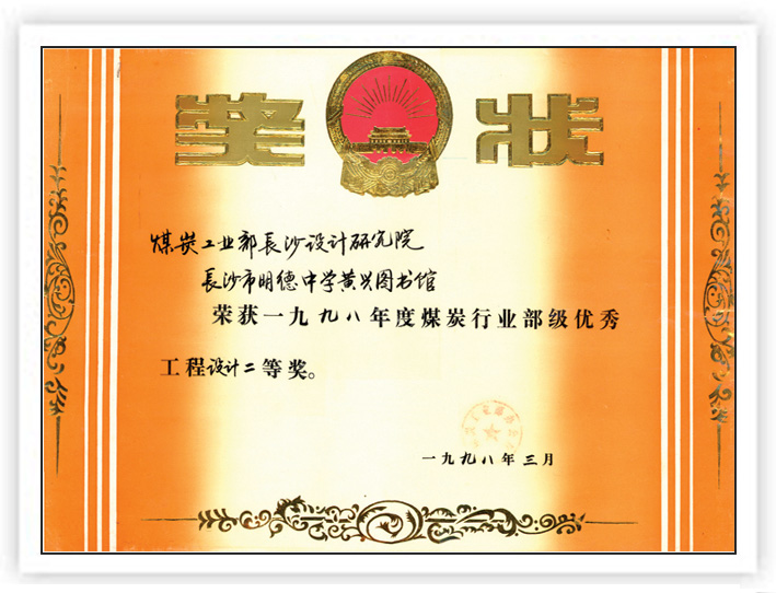 湖南省優(yōu)秀設(shè)計表揚(yáng)金獎(1984)